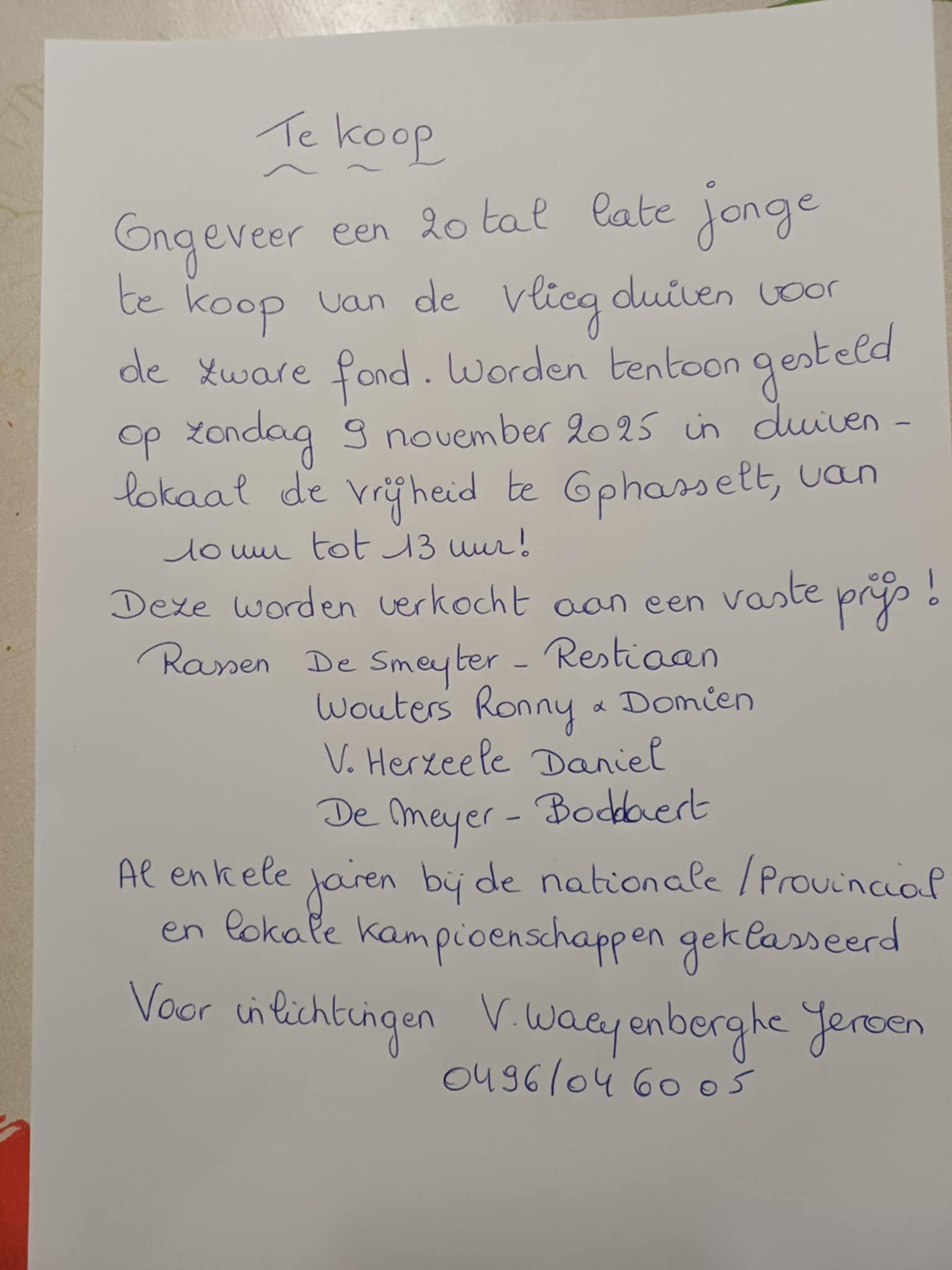 De MEDEDELINGEN & VOORZIENE PLANNING voor de komende weken. Gelieve dit aandachtig door te nemen want alle info omtrent uitbetaling, hoklijsten & ringen 2026 en andere activiteiten staat hierop.